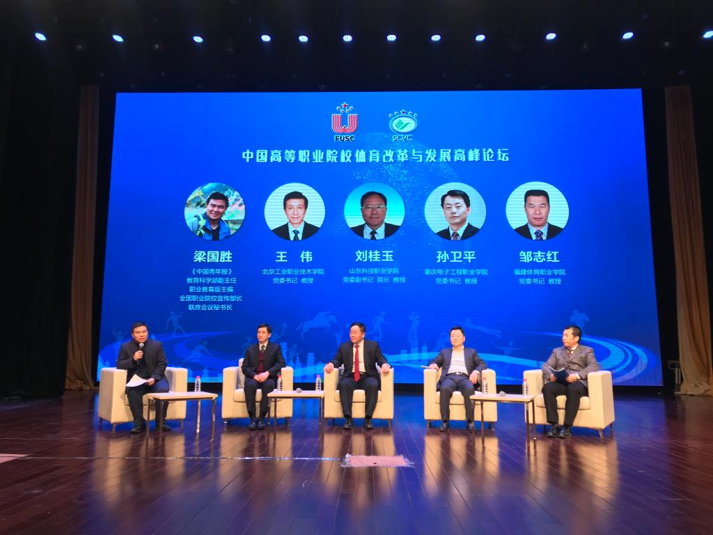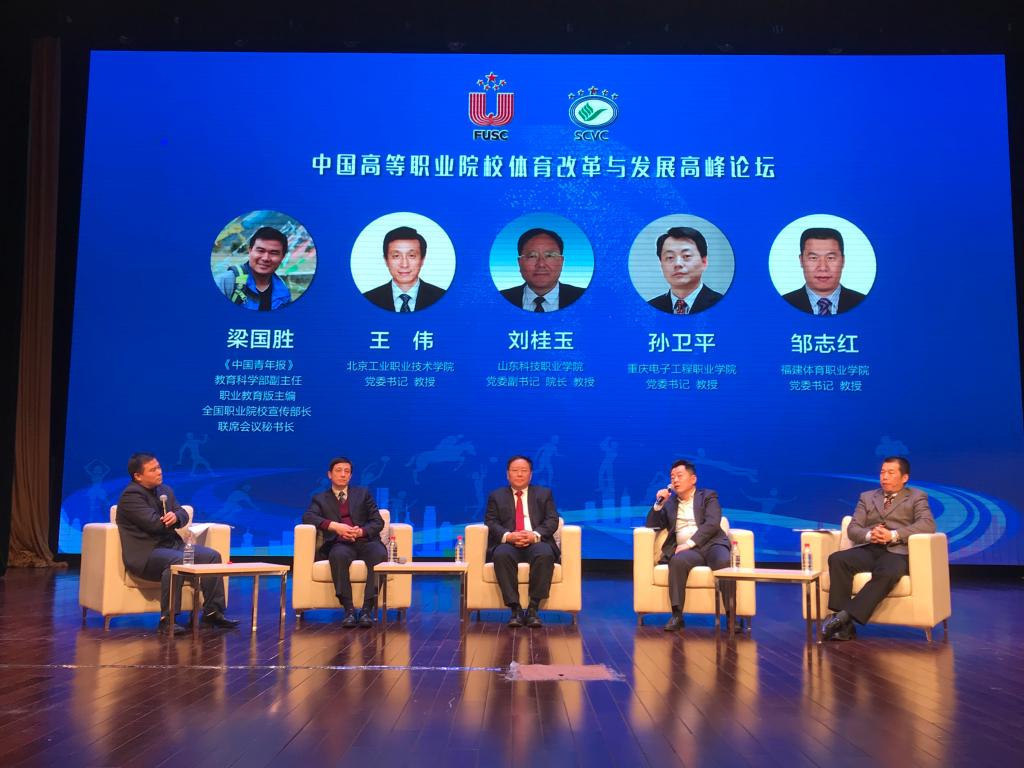 在中国高等职业院校体育改革与发展高峰论坛上,pg国际党委书记孙卫平教授作为重庆高职院校唯一代表(此环节全国仅有四所高职院校代表),就“立德树人”背景下高职院校体育工作管理进行主旨发言,并接受《中国青年报》职业教育版主编梁国胜的现场采访。据悉本次论坛得到中国最大最权威的学校体育咨询平台菁体育全程在线现场直播。