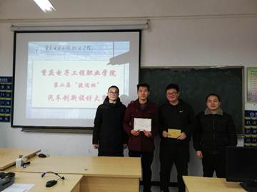 1月6日,重庆电子工程职业学院第二届“捷途杯”汽车创新设计大赛在10-508举行。本次大赛由智能制造与汽车学院主办,汽车工程设计工作坊承办,重庆捷途工业设计有限公司协办。本次大赛由汽车工程设计工作坊张俊峰、刘竞一老师负责组织,比赛裁判全部邀请企业专家担任,其中,林先良担任总裁判,蒲秀果、康清辉和周阳分别担任裁判员。
