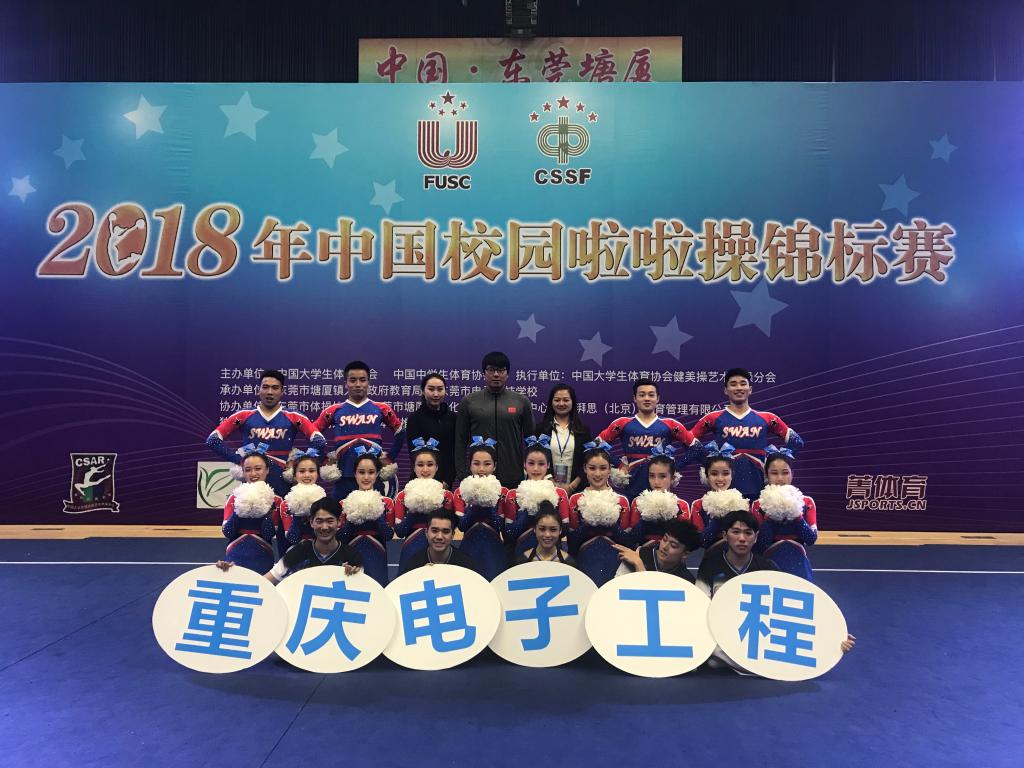 2018年12月9-14日,由中国大学生体育协会主办,中国大学生体育协会健美操艺术体操分会执行,东莞市电子科技学校承办东莞市体操协会协办的2018年中国校园啦啦操锦标赛在东莞市电子科技学校隆重举行。来自全国的大中学共计62支队伍1200余人参加了本次比赛。