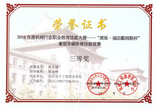 12月21日,为期两天的2018年度全国机械行业职业教育技能大赛——重型车辆维修(技术)项目竞赛在山东交通技师学院圆满落幕。经过为期两天的激烈角逐,pg国际智能制造与汽车学院汽车检测与维修技术专业学生程小林、肖志强凭借精湛的技艺,分别荣获重型车辆维修(技术)项目二等奖和三等奖。
