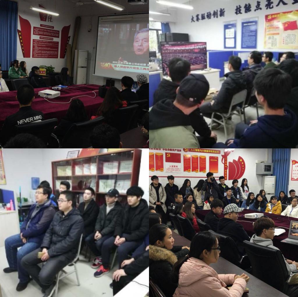 2018年12月18日上午,庆祝改革开放40周年大会在北京人民大会堂举行,中共中央总书记、国家主席、中央军委主席习近平出席大会并发表重要讲话。上午10时,人工智能与大数据学院师生采取多种形式,组织收听收看了庆祝改革开放40周年大会直播。