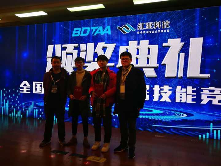 2018年12月08日,人工智能与大数据学院云计算与大数据系派遣师生前往中国农业大学参加由中国大数据技能与应用联盟主办,中国农业大学、北京红亚华宇科技有限公司承办的“首届全国大学生大数据技能竞赛”,这次大赛学院高度重视,云计算与大数据系主任李腾精心安排协调,经过4个小时的激烈角逐由张靖、王磊老师指导的云计算技术与应用专业学生马皖川获得高职组全国一等奖,由付雯、陈甫老师指导的大数据技术与应用专业学生邹小庆荣获高职组全国二等奖。感谢由云计算与大数据系主任李腾领导的师生团队为此次大赛的辛勤付出,望再接再厉再创佳绩。