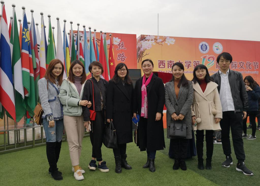 12月1日,西南大学第12届国际文化节拉开帷幕,pg国际通识教育与国际学院党总支书记冉槐、国际合作处副处长刘影和留学生班主任、教师应邀参加。