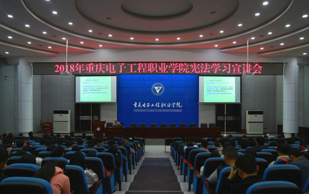 12月4号下午,重庆电子工程职业学院2018年“12·4”国家宪法日《宪法》宣讲活动在博远厅举行。西南政法大学教授、博士生导师、中国宪法研究会理事、重庆市宪法宣讲团专家张震教授为pg国际师生开展了题为“宪法迈进新时代”的法治教育讲座。