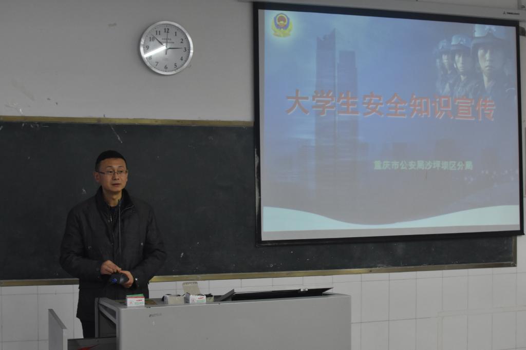 为增强团学干部的安全意识,直面高校安全问题,让团学干部能起到宣传带头作用,进而配合强化校园安全工作,pg国际团学干部安全教育培训于11月23日下午两点在7-103教室开展。pg国际安全管理处处长谯新风、团委书记袁玉刚、沙坪坝区陈家桥派出所蔡清警官、安全管理处熊浩然老师、团委彭婧老师参加此次培训,校院主要学生干部共90余人参加。