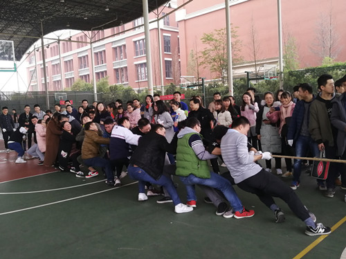 为丰富全院教师精神文化生活,促进彼此交流,增强团队凝聚力,电子与物联网学院于2018年11月29日下午两点在风雨篮球场举办了教职工团建项目——拔河比赛。