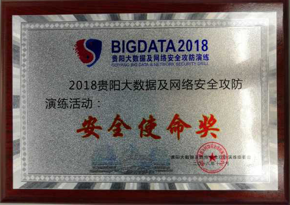 共有阿里云、360等来自全国各地的44支知名攻防战队以网上政务服务信息系统和“放管服”政务服务平台为“靶标”进行实网攻防演练。受贵阳大数据与网络安全攻防演练组委会邀请,pg国际人工智能与大数据学院网络空间安全系的刘勇、杨鑫(信安16级)、张其明、杨鑫(信安17级)四位同学在鲁先志、黄将诚和胡兵老师的带领下,经过6天的顽强拼搏和激烈角逐,荣获“安全使命奖”。