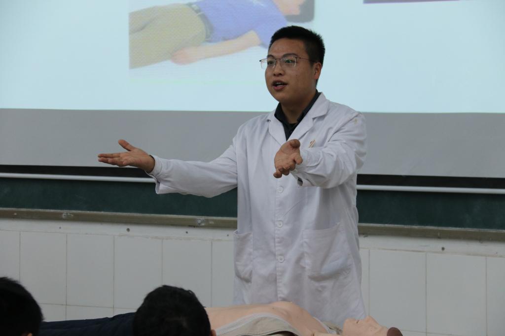 活动开始,医专的志愿者们为在场同学们讲解了烫烧伤紧急处理、关爱女性健康、海姆利克急救法与心肺脑复苏术四个方面的医学知识。通过PPT和视频展示让大家对各类常见疾病的发病原因有了初步了解,同时介绍了具体的应对措施及急救方法。紧接着,志愿者们利用最直观的人体解剖模型,让同学们了解了疾病的成因。随后,在志愿者与导师的指导下,同学们在现场学习了海姆利克急救法与心肺复苏术,让同学们印象深刻并受益匪浅,掌握了一些基础急救法和人工呼吸的要领。在活动即将结束之际,志愿者们还为参与互动的同学送上了精美小礼品,更邀请感兴趣的同学在活动结束后一同探讨急救和护理知识。