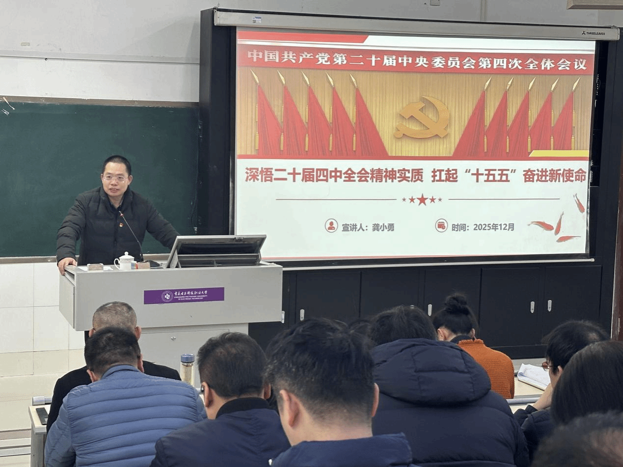 2025年12月18日,校党委副书记龚小勇在博德楼B131教室开展了党的二十届四中全会精神专题宣讲。人工智能与大数据学院(网络空间安全学院)、党委组织部、党委统战部、发展规划与质量管理中心全体教师参加了本次宣讲。