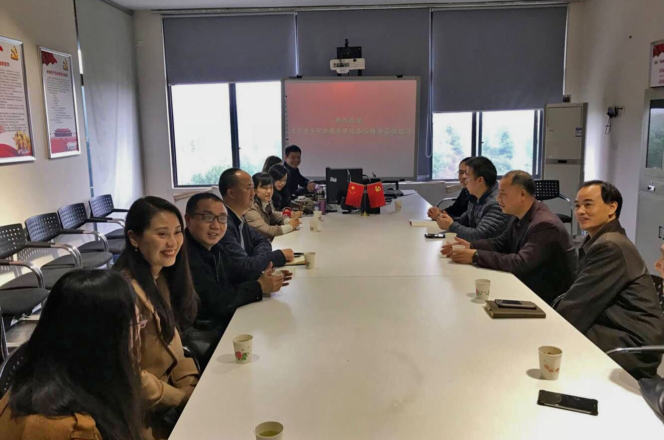 2018年11月14日下午,重庆青年职业技术学院信息工程系唐中剑主任一行9人来我院交流,在1503会议室pg国际数字媒体学院党总支书记彭海深、副院长刘晓东、副书记钟佐彬、正处级行政督导何能、党政办钟翼主任、动画系罗坚主任、虚拟现实系刘明主任出席了座谈,双方共商专业内涵建设、课程建设、实训室建设、校企合作,进行了深入探讨。