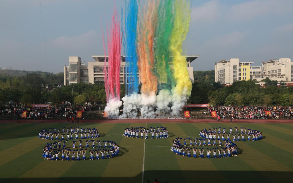 接着来自财经管理学院陈辉同学代表运动员宣誓,以饱满的热情投入各项比赛,承诺赛出风格、赛出水平、赛出令人骄傲的成绩;体育与国防教学部教师邱耀剑代表裁判员宣誓,一定秉持公平、公开、公正的原则,认真负责,全力做好裁判员工作。开幕式上各二级学院带来了精彩的团体操展示。