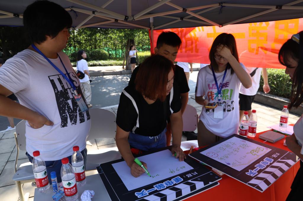 来自人工智能与大数据学院的邱锦熠同学向我们说道:“我觉得此次活动非常具有意义,通过镜头的方式记录下了我刚踏入大学时的第一刻,并让我在DIY场记牌上写下了自己的目标,让我能够在以后的大学生活中可以朝着这个目标而不断努力。”
