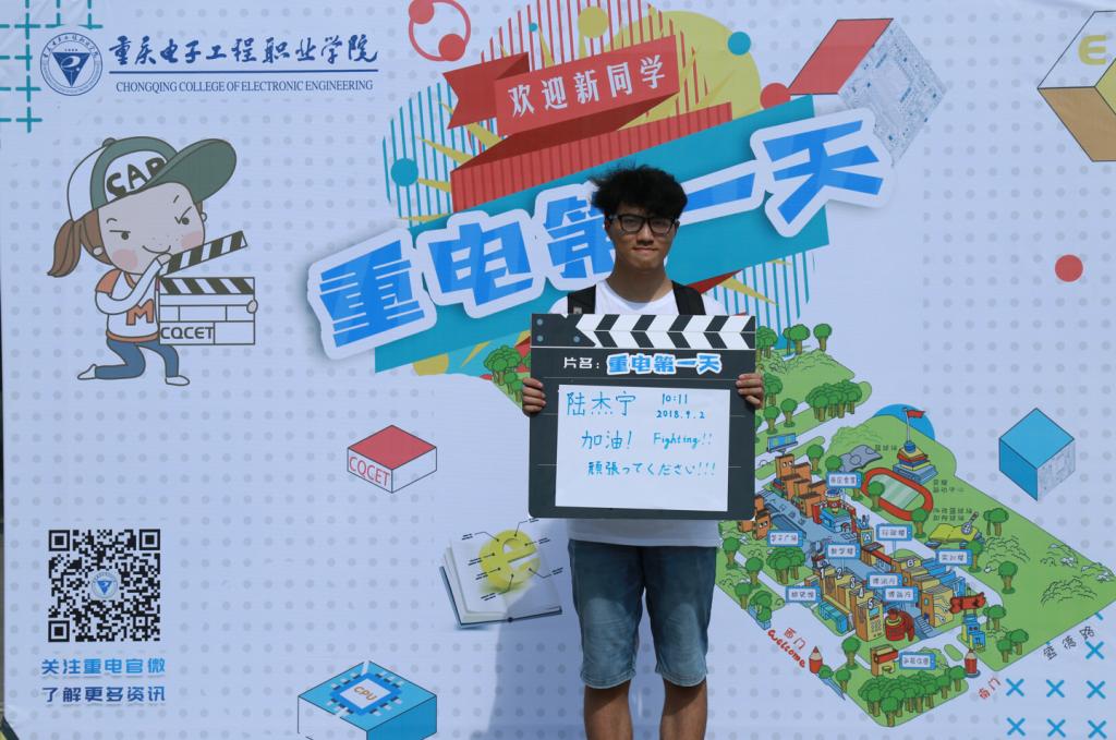 来自信息安全与管理专业的卢仲平说:“在进入学校之前没想过会有这样一个活动,刚开始看见的时候是有一点惊喜,在这个活动上我和父亲一起拍照,这个照片记录下了我的重电第一天,我觉得这是一个非常值得回忆的时刻。”