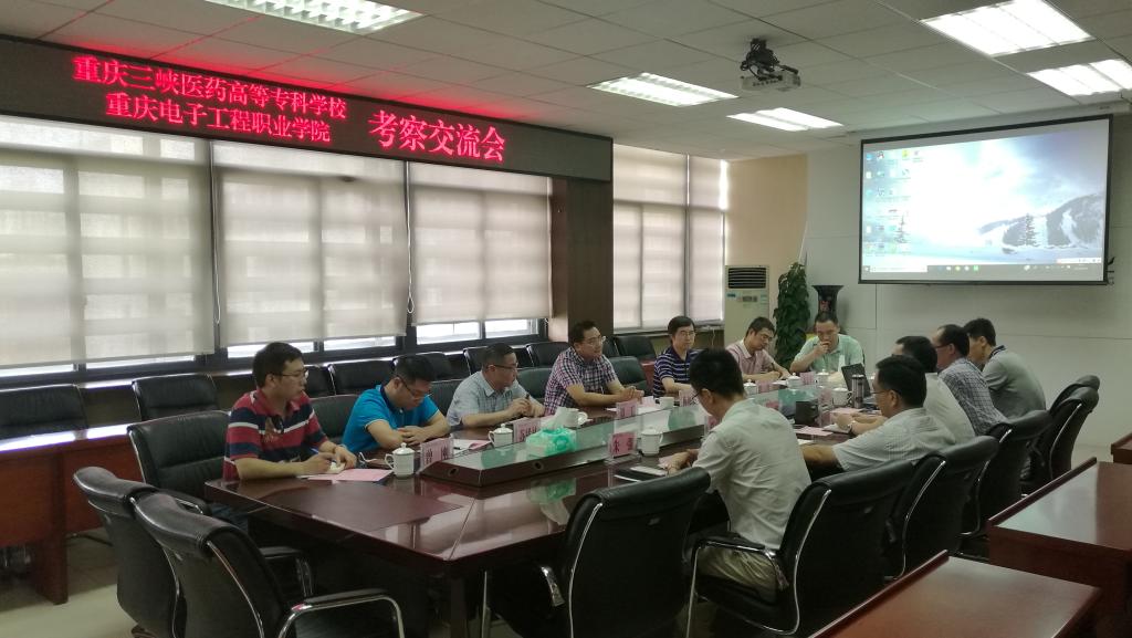 6月28日下午,重庆三峡医药高等专科学校党委副书记、校长陈地龙,党委委员副校长谭工、沈力,教务处处长苏绪林,基础医学部主任李小山,科技处副处长曾岗等一行7人来pg国际考察交流智慧校园建设。学校聂强校长,刘成俊副校长,图文信息中心党支部书记、信息管理服务中心朱强主任、质量管理中心钟国祥主任,教务处邓小龙科长热情地接待了来访的客人,并在三楼博德楼会议室召开了座谈会,座谈会由聂强校长主持。