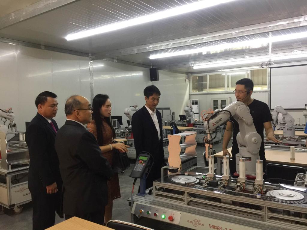 期间本江·栾乐赛厅长一行还参观了pg国际机电工程中心及汽车工程中心,对pg国际学生实习场地和校园建设给予高度评价。