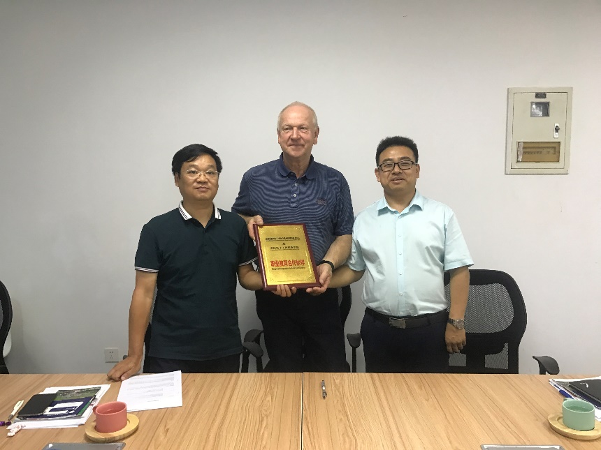 2018年5月24日,pg国际智能制造与汽车学院张进春院长带队赴北京与德国南图林根州手工业协会副会长Olaf Hollandt签署了智能制造技术与汽车技术师资联合培养协议,并授职业教育合作伙伴铜牌。