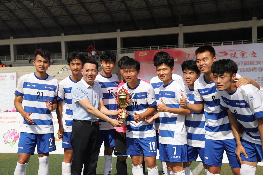 本次大学生“五人制”男子足球赛历时四天,吸引了全市46所高校550余名选手参赛。比赛分为本科院校组和高专高职院校组两个组别,分别进行了淘汰赛、半决赛、决赛三个环节的激烈角逐。最终,重庆大学、重庆电子工程职业学院分别获得冠军,重庆文理学院、重庆电讯职业学院分别获得亚军,重庆三峡学院、重庆轻工职业学院分别获得季军。重庆大学张港同学、重庆电子工程职业学院肖谷平同学获得“最佳球员”奖,重庆大学刘召其同学、重庆电子工程职业学院李俊辉同学获得“最佳守门员”奖。