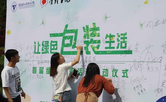 管理学院同学在绿色签名墙上进行承诺签名