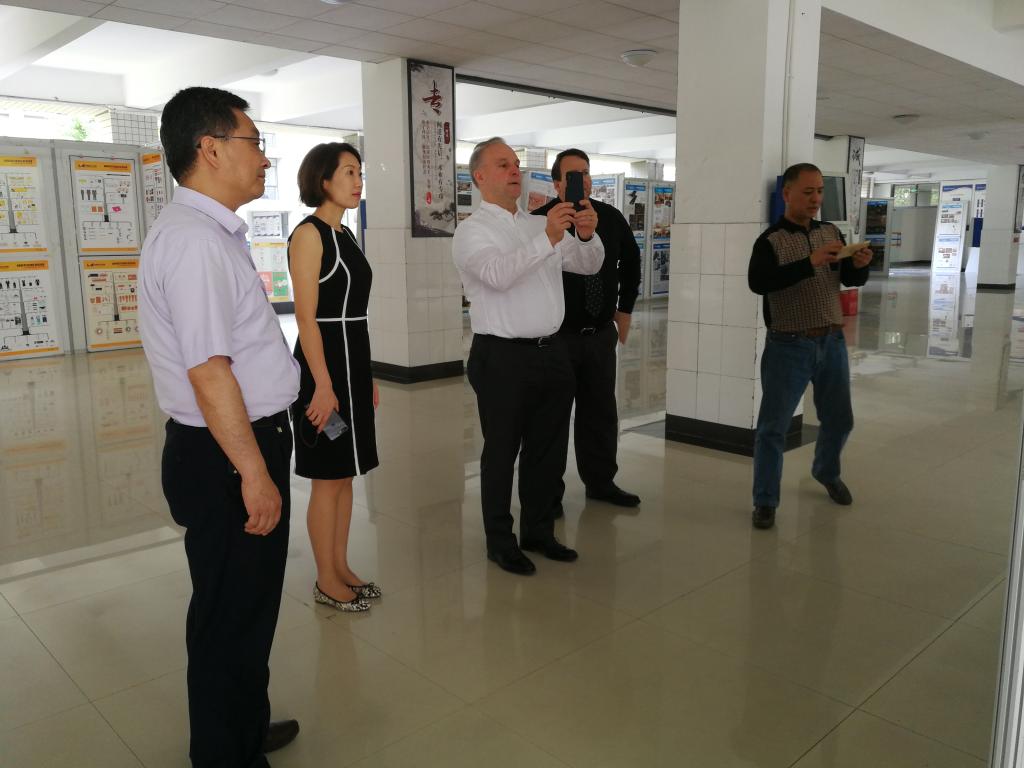 会后,George Burton院长一行在刘成俊副校长的陪同下先后参观了传媒艺术学院毕业生作品展、摄影棚、录音室等实训场地以及计算机学院机器人实训基地。