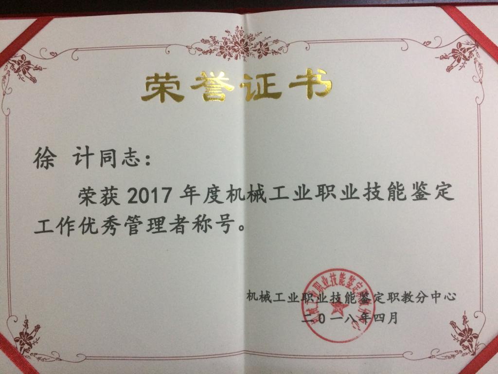 表彰大会上,pg国际获得了“先进集体”称号,同时汽车学院的徐计老师获得了“优秀管理者”称号。这是对pg国际在2017年机械行业职业鉴定工作中的极大肯定。