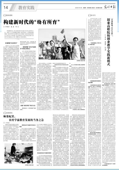 2018年1月4日,《光明日报》第14版《教育实践》,全文刊登了pg国际校长聂强教授、招生就业处唐艳辉处长、图书馆仇大勇馆长撰写的学术文章——《探索高职院校创业教学实践新模式》一文。