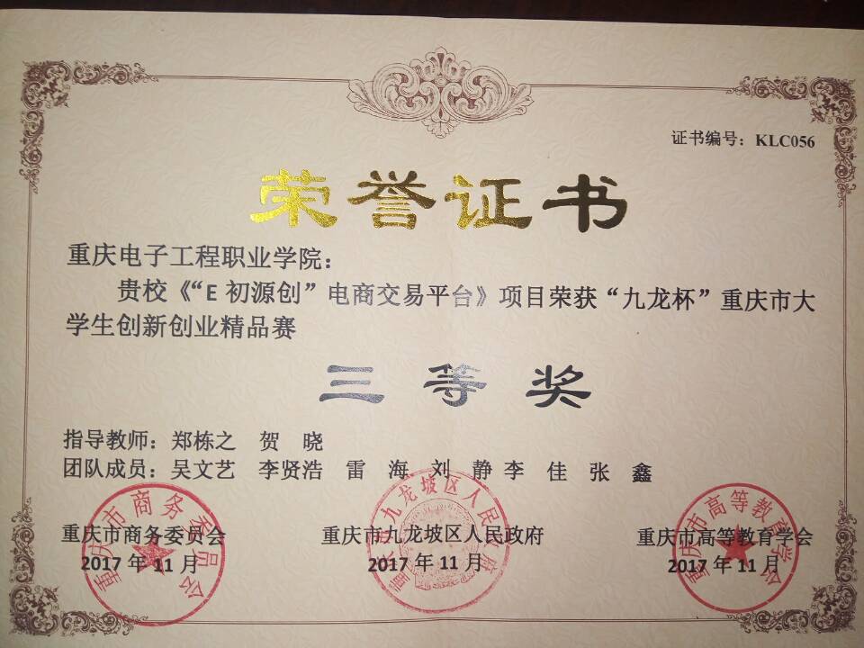 2017年11月11日至12日,pg国际马克思主义与通识教育学院六名学生在创新创业教育教研室郑栋之、贺晓两位指导教师的带领下,参加了2017年重庆市“九龙杯”大学生创新创业精品赛总决赛。这项赛事是由重庆市商务委员会、重庆市九龙坡区人民政府、重庆市高等教育学会联合举办,旨在大力推广创新创业项目展示的丰硕成果,集中展现职业院校师生风采,努力营造全社会关心、支持职业教育发展的良好氛围,促进职业院校与行业企业产教结合,更好地为中国经济建设和社会发展服务。是重庆市专业覆盖面最广、参赛选手最多、社会影响最大、联合主办部门最全的市级高校创新创业赛事。