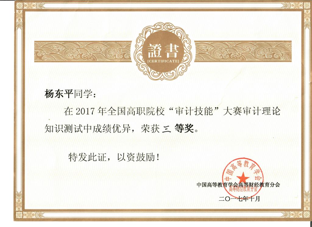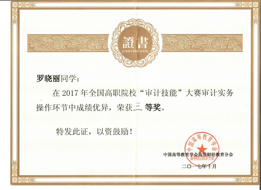 2017年10月28日,财经学院代表队赴安徽参加由中国高等教育学会高等财经教育分会主办,安徽审计职业学院承办,厦门网中网软件有限公司技术支持的全国高职院校“审计技能竞赛”。全来自于国13个省、直辖市、自治区的32所高职院校的200多名参赛师生参加了决赛。本次竞赛分90分钟审计理论环节和150分钟实际操作环节,财经学院由胡志容和胡敏老师指导兼领队的代表队经过激烈的奋战最后获得了团体三等奖、个人单项二等奖一项、个人单项三等奖二项的好成绩。