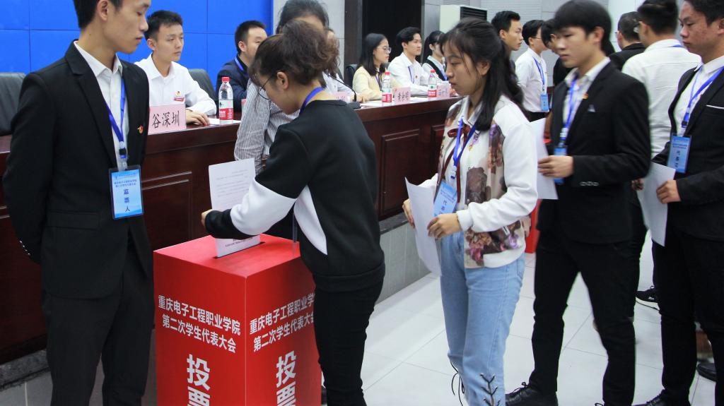 当天,还召开了重庆电子工程职业学院第二届学生委员会第一次全体会议。会上,黄余明同学当选为校学生会主席,李向东、田朴岑、李慧雯、郑雅丽四名同学当选为校学生会副主席。