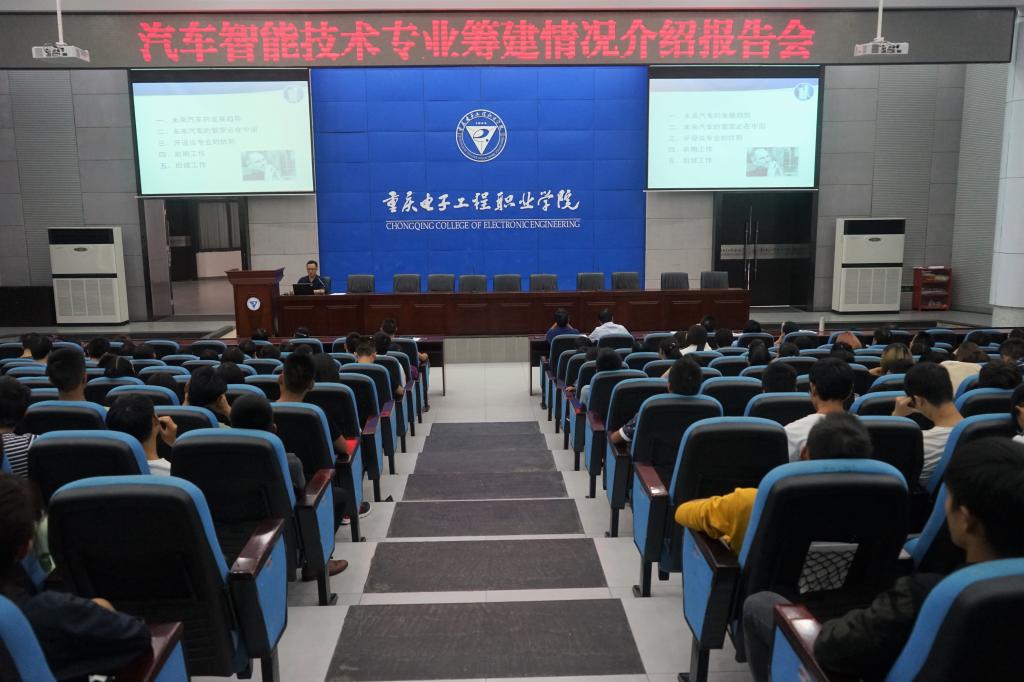 9月28日下午2点30分,pg国际应用电子学院在南校区博远厅举办“汽车智能技术专业筹建情况介绍”报告会。本次报告会由学院副院长王正勇教授主持,智能电子系副主任王用鑫副教授主讲,学院师生约300人听取了报告。