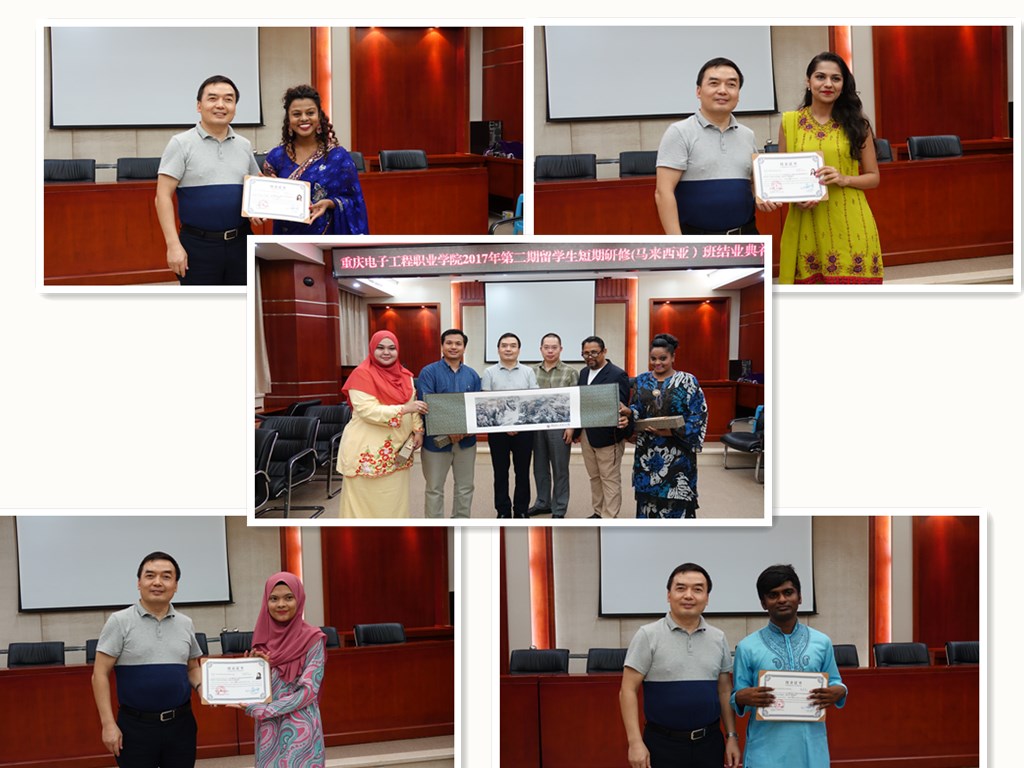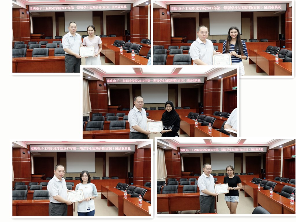 聂强校长和龚小勇副校长在讲话中谈到,作为友好邻国的泰国和马来西亚,与中国地理相邻,感情相通,经济互补,文化和教育领域互访频繁,在中国教育部“一带一路教育行动计划”的推动下,今年pg国际迎来了来自泰国和马来西亚四所大学的35名师生,来pg国际进行为期20余天的短期留学研修,在研修期间,两国留学生和带队老师,通过专家讲座、教学观摩、实地参观、工作岗位体验、文化体验等方式,感知中国优秀传统文化,感知重庆文化,感知重电文化;与pg国际大学生们同台演出,展现泰国和马来西亚风土人情、民风民俗魅力,展现重电校园文化的丰富内涵,交流中泰两国大学生的校园生活,加深了对中国和重庆经济、文化及中国高等职业教育情况的了解,搭建了重电大学生与马泰大学生之间的国际交流友谊长桥。希望留学生们能将在重电的所见所闻带回自己的国家,让身边更多的人了解重庆、了解重电,成为宣传中国、传播中国文化的友好使者,并欢迎他们随时带着亲友和同学,重返重电母校来学习和深造。