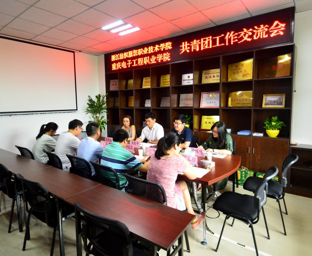 2017年7月6日上午10:00,浙江纺织职业技术学院、重庆电子工程职业学院团学工作专题交流会在重庆电子工程职业学院学工部会议室顺利召开。出席此次交流会的领导和老师有浙江纺织职业技术学院团委梅惠平书记,团委梁淋峰副书记,团委办公室主任、社团联合会指导老师陈思韵,团委、学生会指导老师徐咪咪以及重庆电子工程职业学院党委学生工作部副部长、校团委钟佐彬书记,建筑与材料学院学生管理科科长、校团委凌绪副书记,培训与继续教育学院团总支刘涛书记、校团委张妙龄、丁文雅老师。会议由钟佐彬书记主持。