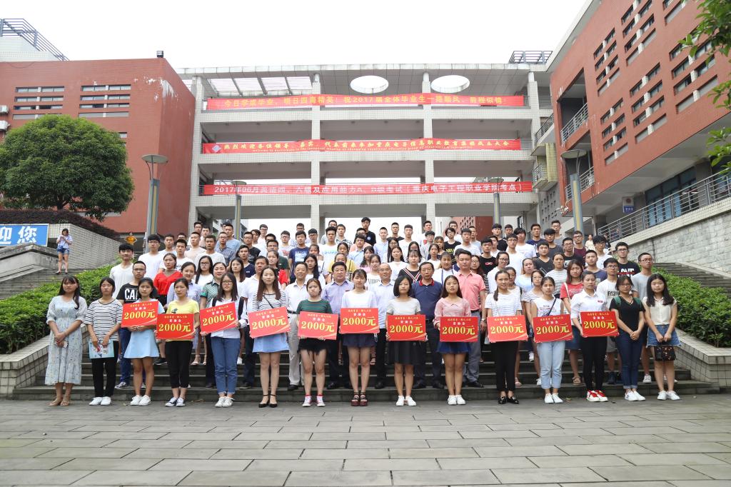 最后,现场的领导和嘉宾为受助学生代表发放资助金,并与所有受助学生合影留念。至此,2017年“福彩刮刮乐.助我梦飞翔”公益助匠活动资助金发放暨福彩进校园公益大讲堂之重庆电子工程职业学院站圆满结束。
