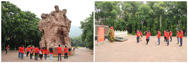 在老师的带领下,团员同学有序的进入红岩魂陈列馆参观。在参观过程中,由校组织部谭强同学充当解说员,为老师和团员同学们生动而细致地讲解了先烈们的光荣事迹。在结束了红岩魂陈列馆的参观后,团员同学们来到红岩魂广场唱团歌重温入团誓词;随后,物联网学院团总支刘影书记强调要牢牢把握“学习习近平总书记重要讲话,做合格共青团员”,在讲话中她说到:“做合格共青团员,要在政治上合格、在品行上合格,在作为上合格,对党绝对忠诚,自觉践行党的理论和路线方针政策,自觉践行社会主义核心价值观,在青年同学中发挥模范带头作用”。最后,师生们来到先烈陵墓前默哀,追忆先烈们的丰功伟绩,缅怀历史,感恩现在。