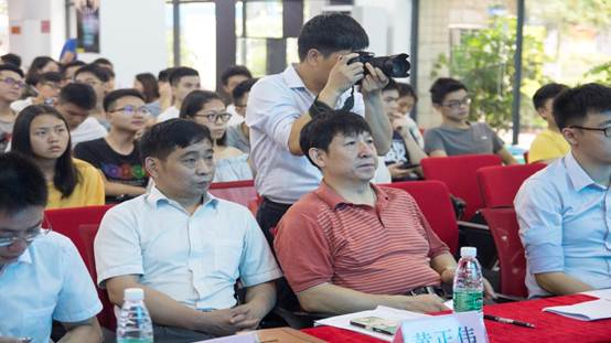 决赛于6月9日上午9点到12:30点半,在重电众创空间进行,通信工程学院党总支书记黄正伟、副院长陶亚雄和王俊峰出席决赛现场,认真听取了16个参赛小组的路演汇报。