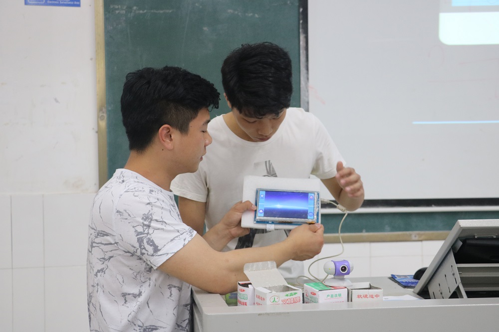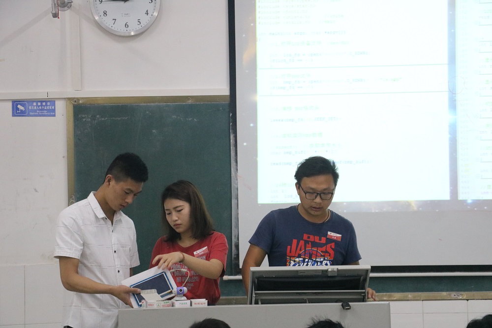 活动伊始,计算机学院武春岭副院长首先发表讲话。他在讲话中谈道:“目前我国的创业环境良好,学技术的同学们应当提升专业技能,发扬学院专业特色,把握就业机遇。”随后是成果验收评比环节,经过为期一周的学习,共有10个项目小组脱颖而出。参赛队伍通过演讲,辅以PPT和现场演示等形式将他们的参赛作品展示给现场观众。行车记录仪项目中,各队分别从团队组成、设计过程、发展前景等角度出发,向观众展示了可以实现触摸屏感应、摄影控制功能的作品。而在智能小车项目上,各队则通过用手机软件蓝牙控制,实现小车前进、后退、旋转、避障等功能。同学们精彩的现场演示赢得了观众的阵阵掌声。经过评比,最终评出三等奖3名,二等奖2名,第一名1名。活动的最后,计算机学院党总支刘宏宇副书记为本次活动作简要总结,他首先肯定了教研室的教学成果,同时也对粤嵌公司的技术人员致以诚挚的感谢,并鼓励同学们转变就业观念,自觉增强业务水平。至此,本次双创活动圆满落幕。