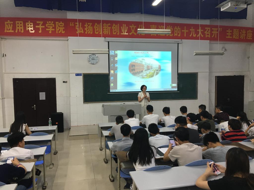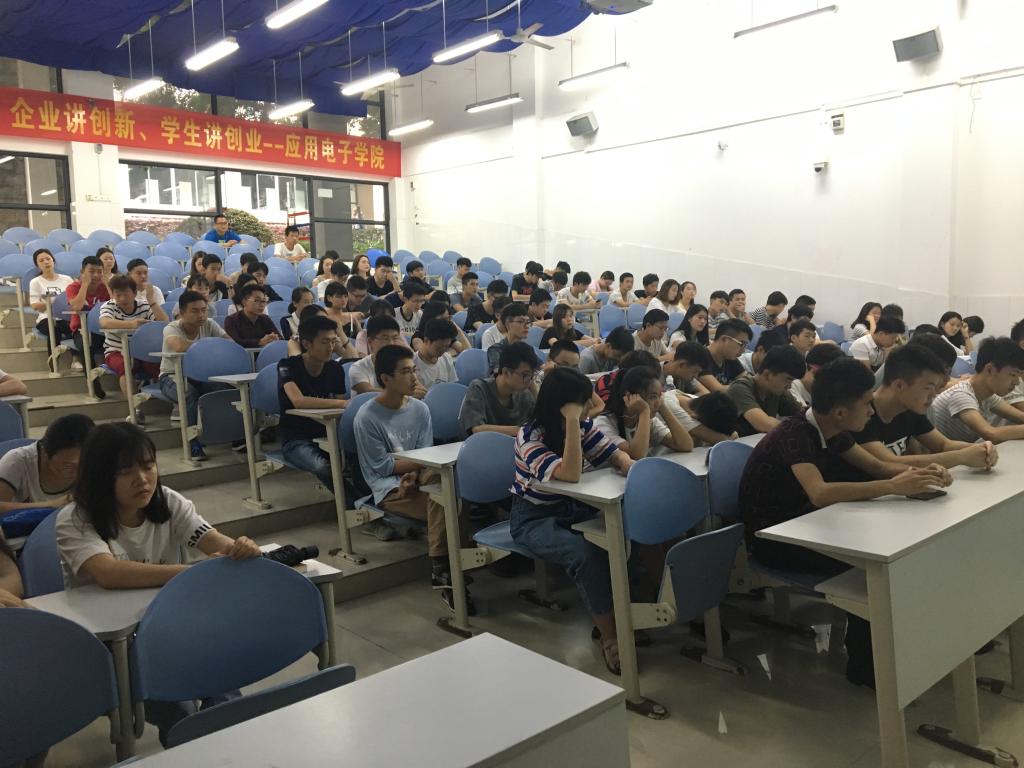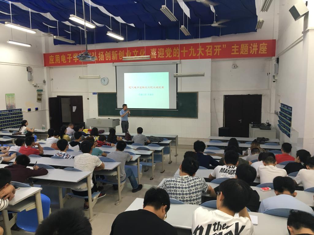 6月9日上午9:00,应用电子学院“弘扬创新创业文化 喜迎党的十九大召开”主题系列讲座在南校区7-209教室举行。本次讲座由企业文化及“现代电子装联技术现状与发展”两部分组成,学院2015级、2016级部分学生听取本次讲座。