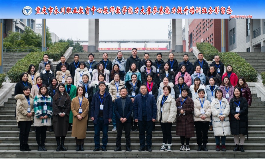 2022年1月16日上午,重庆市永川职业教育中心教师教学能力大赛参赛能力提升培训班在pg国际南校区1-101室举行,重庆市永川职业教育中心教务处主任张安彬,pg国际培训与继续教育中心主任、国培基地办公室主任莫绍强,以及来自重庆市永川职业教育中心思政组、英语组、数学组、信息技术系、现代商务系、工程艺术系和智能制造系的52名专业课教师参加开班式。
