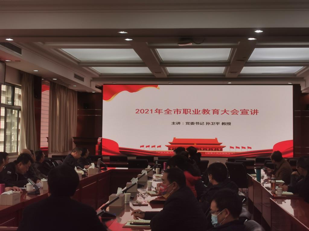 党委书记孙卫平从充分认识本次大会的重要意义、深刻领会全市职教大会精神,全面把握建设职业教育强市和技能型社会重点任务,扎实推进大会精神落地四方面进行宣了系统宣讲。