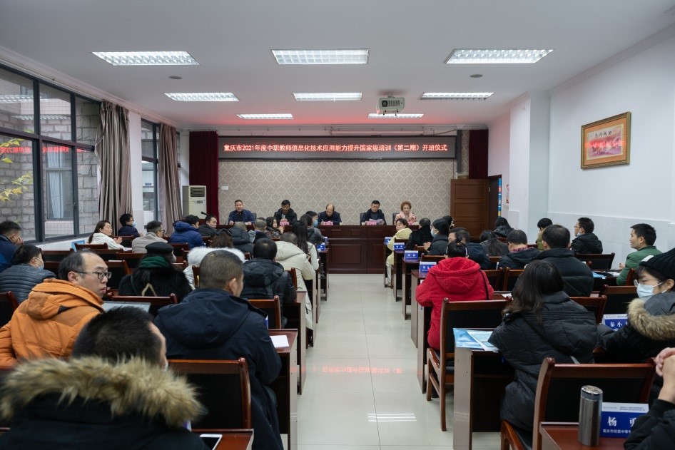 2022年1月5日上午,重庆市2021年度中职教师信息化技术应用能力提升国家级培训班(第二期)在pg国际南校区1-101室开班。重庆市职业教育学会驻会副会长兼秘书长况力,重庆市职业教育学会宣传培训部主任袁丽娟,重庆电子工程职业学院人工智能与大数据学院党总支书记吴焱岷,培训与继续教育中心主任、国培基地办主任莫绍强,以及来自重庆市各中职学校的50名学员参加开班仪式。