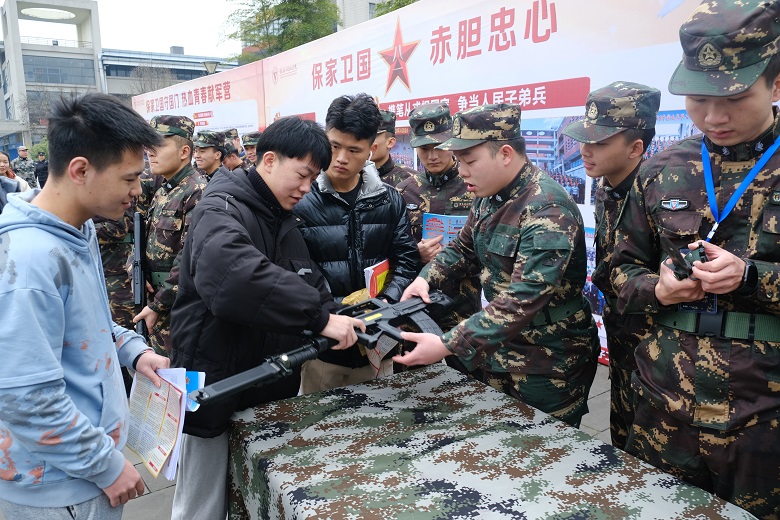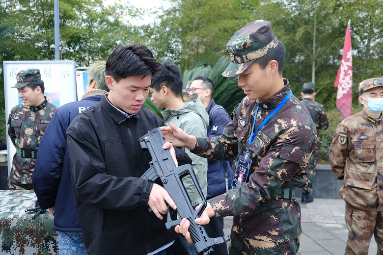 新的一年即将开始,2022年春季征兵工作也拉开了序幕,为贯彻上级指示精神,进一步落实征兵工作相关要求,加大宣传力度,学校人民武装部在学子广场开展了征兵宣传活动。人民武装部充分利用分发宣传单、悬挂宣传标语、征兵宣讲、视频宣传、现场讲解、轻武器参观等多种方式,从成长成才,参军入伍,津贴及退役安置政策等进行多方面宣传。此外,还通过微信朋友圈集赞领取征兵活动纪念章的方式将线上宣传与线下宣传结合起来,极大地调动了同学们参与征兵宣传的积极性,为2022年春季征兵工作奠定了坚实基础,让重电学子的从军意愿得到了切实帮助。大学生入伍,是新形势下提高部队兵员素质,加强国防和军队现代化的重大举措,也是提升大学生精神文化生活的重要途径。