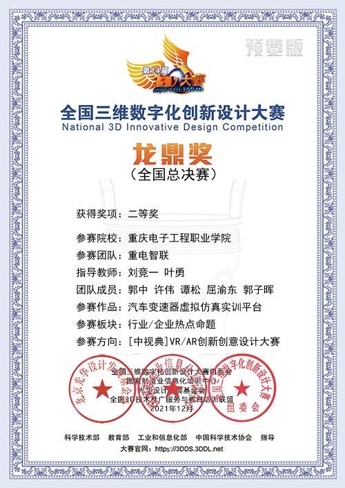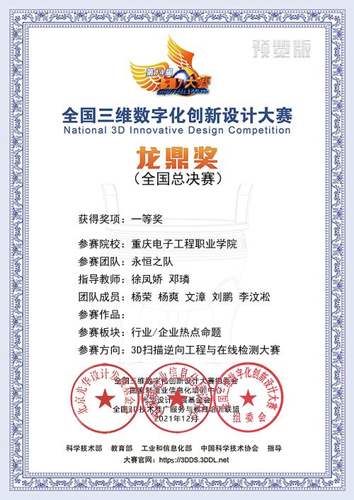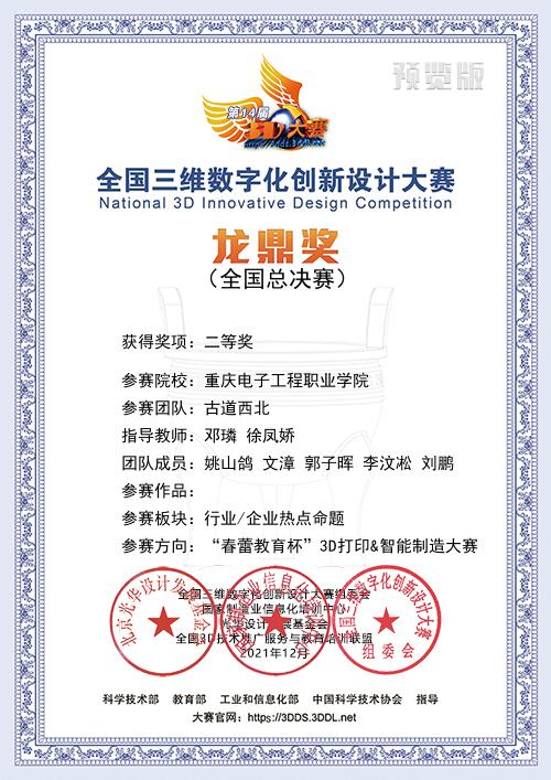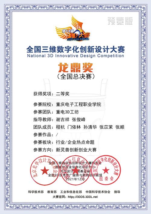 2021年12月4-5日,由国家科技部、工信部、教育部、中国科协等部门指导,联合国家制造业信息化培训中心、全国三维数字化技术推广服务与教育培训联盟(3D动力)、光华设计发展基金会等单位共同主办,北京昆仑三迪科技发展有限公司与国家制造业信息化培训中心3D办联合承办的2021年第14届全国三维数字化创新设计大赛总决赛成功举办,全国总决赛采用了线上为主的方式进行,本次全国总决赛共设置27个赛场,邀请近100位行业/院校/企业专家参与了国赛作品的评审工作,经过校赛、省赛层层选拔,本次年度总决赛共有305个院校,800余个团队进入国赛角逐龙鼎大奖。