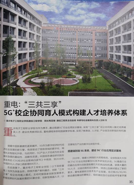 自2019年以来,重庆电子工程职业学院与华为携手,通过搭建5G行业应用实训基地,采用“三共三享”校企协同育人模式培养精英人才、建设优秀教师队伍、重构课程体系和国家教学标准,实现了教育链、人才链、产业链及创新链的有机融合。依托实训基地,重电在全国首先开发了适应高职教育的《移动通信技术》、《5G移动通信技术》、《OTN光传输技术》和《NB1OT移动物联网(5G)应用与开发》等系列课程。课程在国内大学慕课平台上线后,先后吸引了超过5万名用户参与学习。此外,重电开发的《移动通信基站系统运行与维护》等6门国家级课程,也得到了同类院校的高度认可,已被30多所高职院校的相关专业所采用。