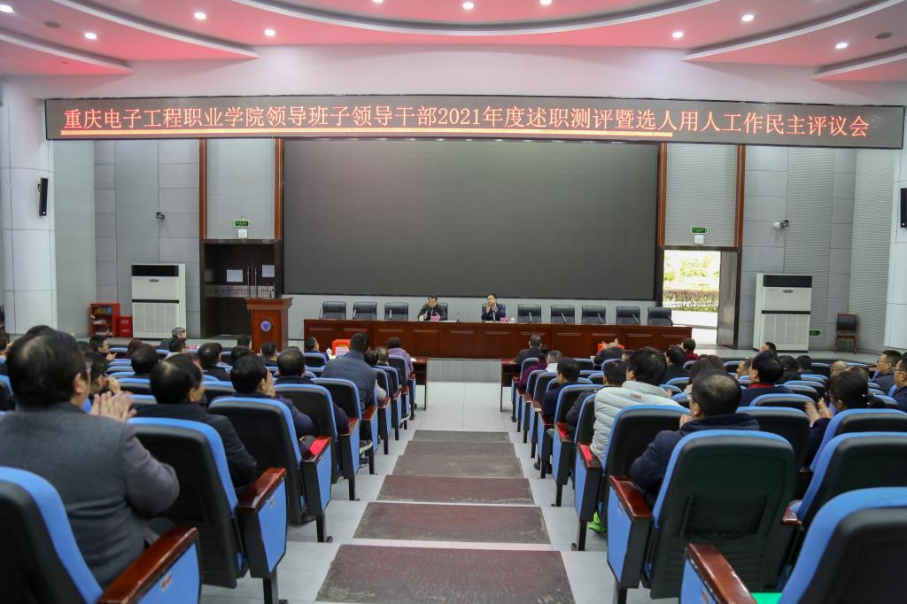 2021年,学校党政领导班子团结带领全校师生员工,坚持以习近平新时代中国特色社会主义思想为指导,认真学习党的十九大和十九届历次全会,重庆市委五届九次、十一次全会精神,深入贯彻习近平总书记“七一”重要讲话精神、关于教育的重要论述、全国教育大会以及全国、全市职业教育大会精神,紧紧围绕习近平总书记对重庆提出的“两点”定位、“两地”“两高”目标、发挥“三个作用”、营造良好政治生态和推动成渝地区双城经济圈建设等重要指示要求,立足新发展阶段,贯彻新发展理念,融入新发展格局,围绕党史学习教育、巡视整改、“双高计划”建设、本科层次职业学校申创等主要任务,齐心协力,开拓进取,各方面工作取得了可喜成绩,切实推动学校教育事业高质量发展。会上,校领导孙卫平、聂强、龚小勇、陈丽、幸昆仑、刘成俊、谢义华、冉学农、黄爱明分别述职,参会代表对学校领导班子和领导干部进行民主测评。