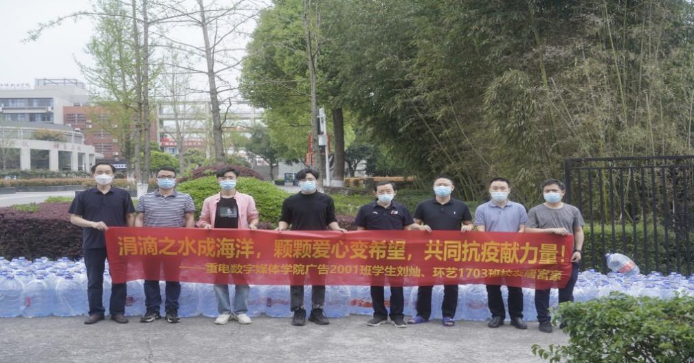 数字媒体学院广告2001班的刘灿同学看到老师和志愿者为了保障全校师生的健康,日以继夜、废寝忘食地奋斗在抗疫最前线,他决定捐赠饮用水,为学校抗疫工作出一份力。