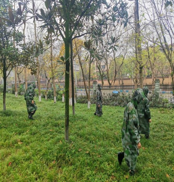 平安校园服务队、迷彩青年工作站学生开校园巡逻和校园围合情况巡查