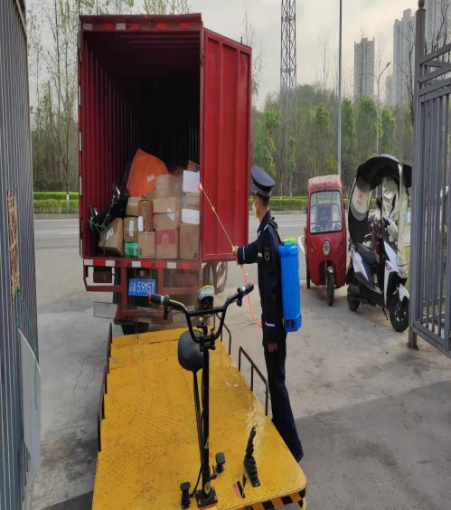安管干部和队员管控门岗,消杀进校车辆及物品