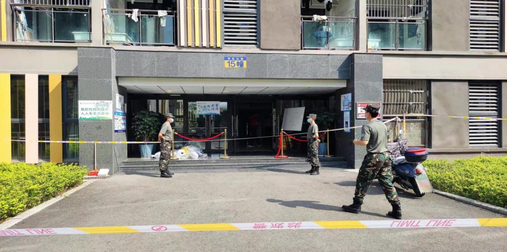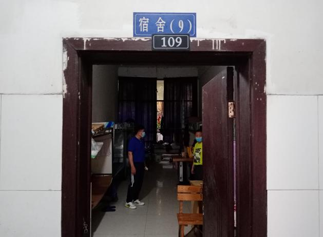 迷彩青年工作站队员值守15栋学生宿舍(重点观察学生隔离点)