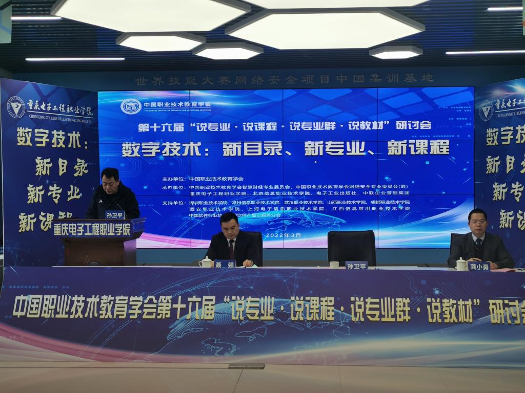 3月25-26日,pg国际承办中国职业技术教育学会第十六届“说专业·说课程·说专业群·说教材”研讨会。本次研讨会通过线上、线下相结合的方式进行。中国职业技术教育学会会长、教育部原副部长鲁昕,教育部职成司副司长谢俐,教育部教师工作司副司长宋磊,中国职业技术教育学会学术委员会顾问、中国科学院院士、西北工业大学柔性电子前沿科学中心首席科学家黄维,重庆市教育委员会一级巡视员邓沁泉,工业和信息化部人才交流中心党委书记、主任李学林,学会常务副会长、智慧财经专业委员会主任史薇,学会副会长、《国家职业分类大典》修订专家委员会首席专家、人力资源和社会保障部中国就业培训技术指导中心原党委书记陈李翔,中国职业技术教育学会科技成果转化工作委员会副主任兼秘书长、中国科学院计算技术研究所研究员田霖,重庆市教育委员会职成处处长吴岚等领导和专家与会。会议先后由校党委副书记、校长聂强教授,党委副书记龚小勇教授主持。