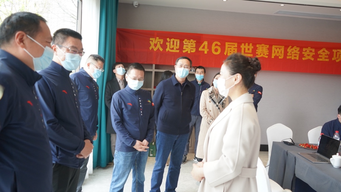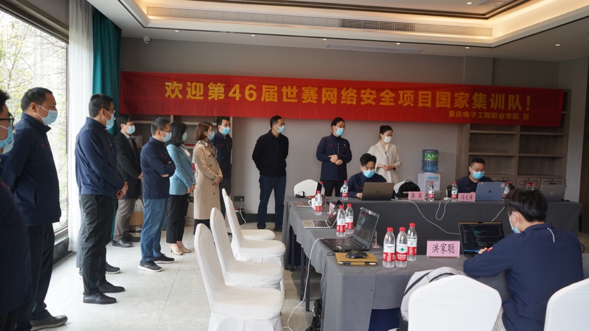 3月23日,重庆人社局副局长苏静一行莅临pg国际第46届世赛网络安全项目走训队慰问。慰问的领导有重庆人社局副局长苏静、副处长彭璐、职建中心主任蹇晓林、副主任王华源、科长余维。