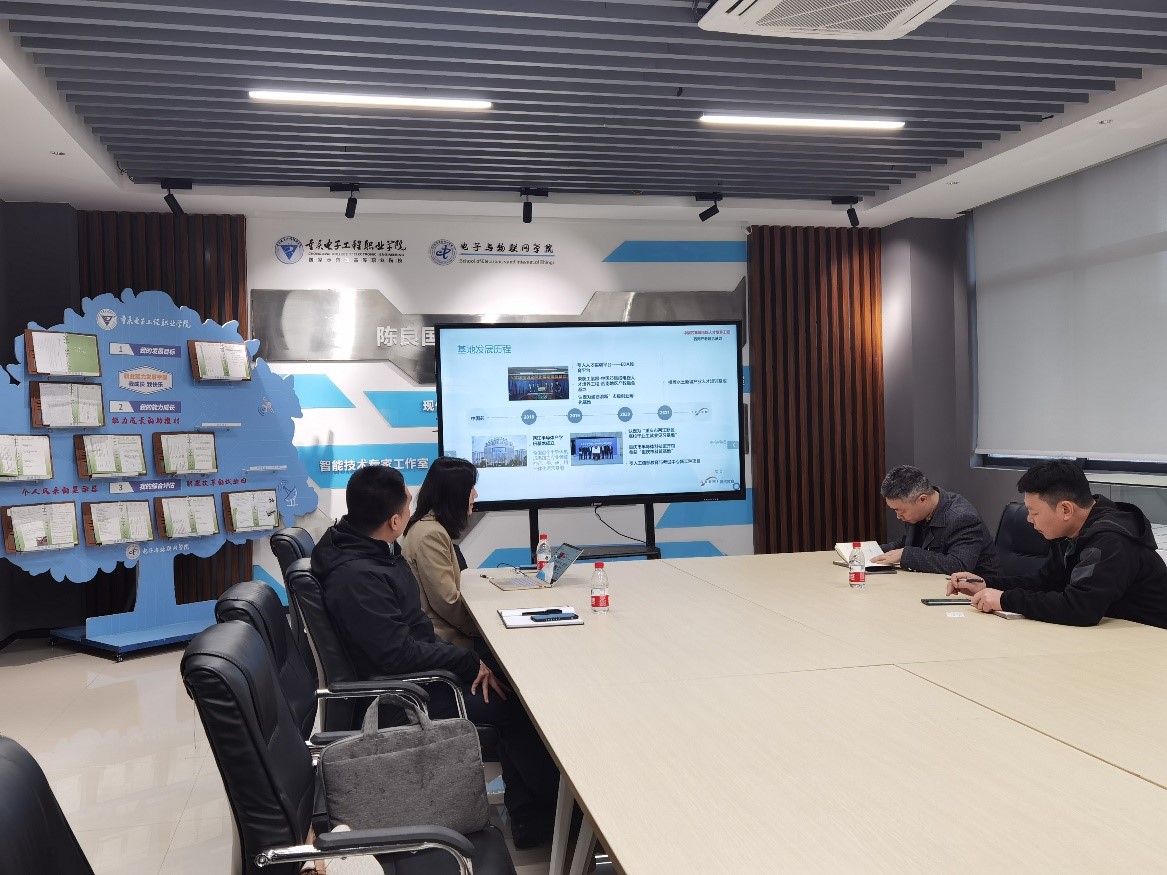 3月31日,重庆两江半导体研究院有限公司执行院长、常务副总经理王朝明、战略合作部经理陈钰一行到访。电子与物联网学院工程中心主任易国键、集成电路系副主任林涛在陈良大师工作室与来宾就产教融合合作发展进行了深入交流。